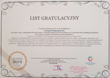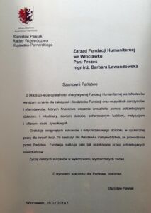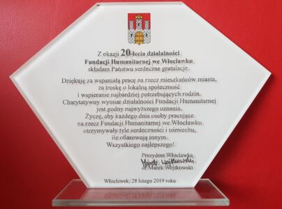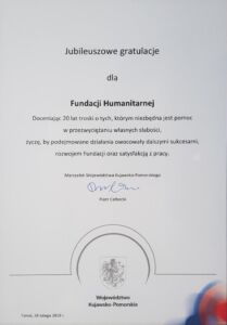 Dnia 22 września 2018 roku minęło 20 lat od daty zarejestrowania przez Sąd (22.09.1998) Fundacji Humanitarnej we Włocławku. Zobacz videorelację z obchodów.
