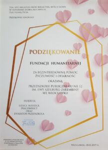 Podziękowania otrzymane przez Fundację z okazji 20-lecia działalności.